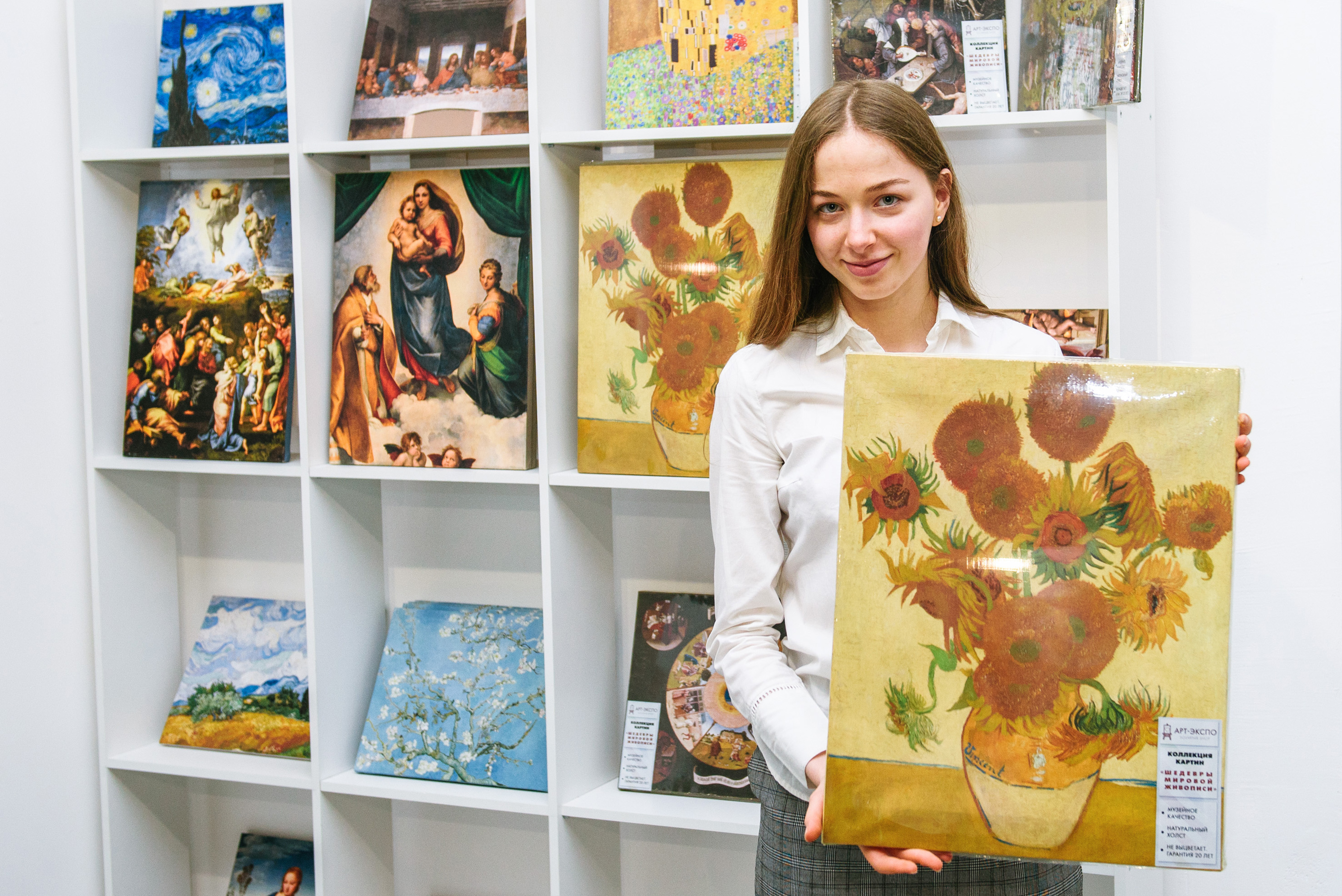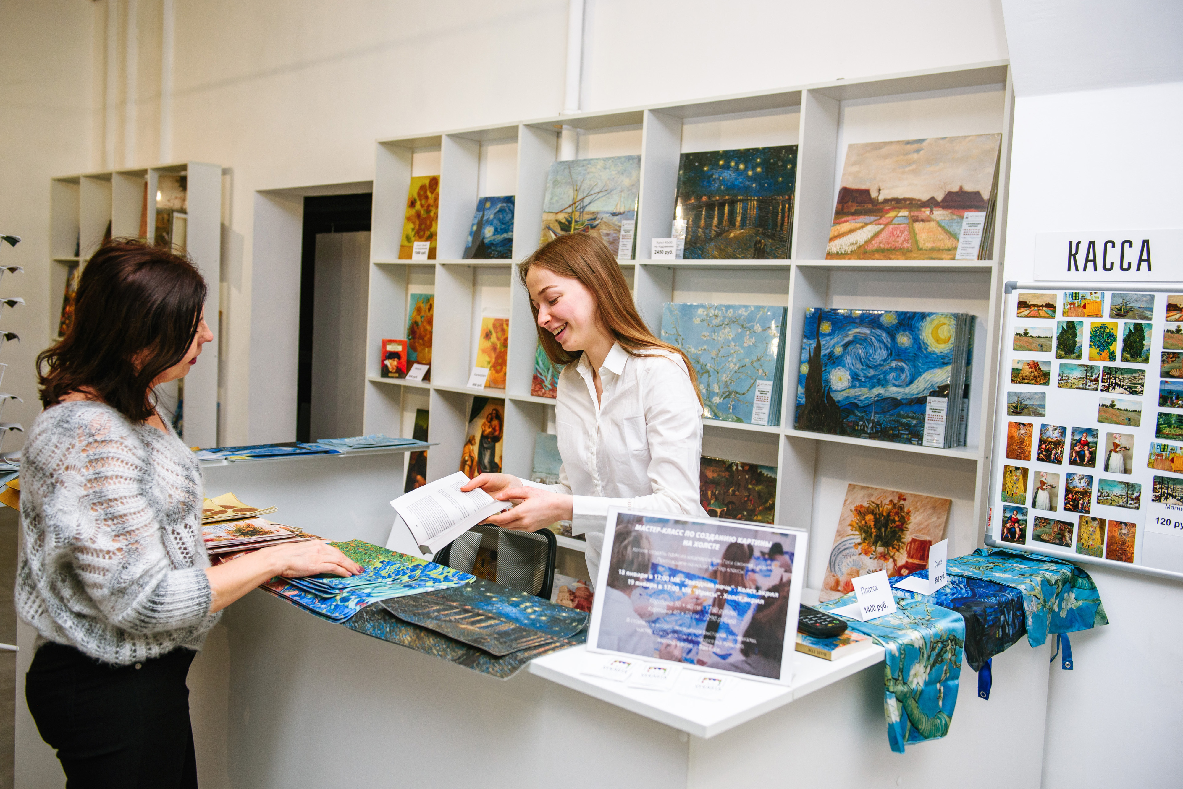 Мы создали для Вас множество сувениров с любимыми картинами - от репродукций на холсте любых размеров, до шелковых платков и стильных сумок. Покупка сувенира с любимым сюжетом - неотъемлемая часть визита на выставку у наших посетителей.